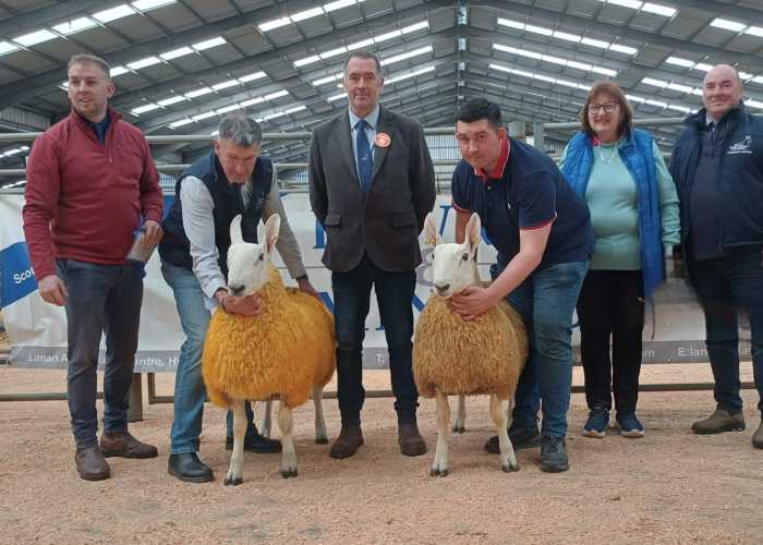Setting trade alight at £4500 was a Ram Lamb, BL3U X13 consigned from Messrs Hamilton, Silvermuir, Lanark. Their number one lamb, he is sired by Lyham Denman and out of a homebred ewe sired by Alticane Authority. He sold jointly to David & Ian Walker, Laigh Alticane, Girvan and Jack Lamb, Boreland Flock, Ayr.
